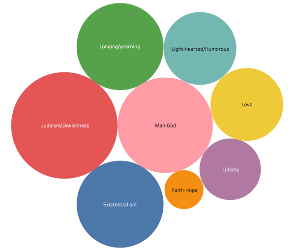 Figure 1. Visualization of the themes of The Art of Jewish Song weighted according to frequency of occurrence.
