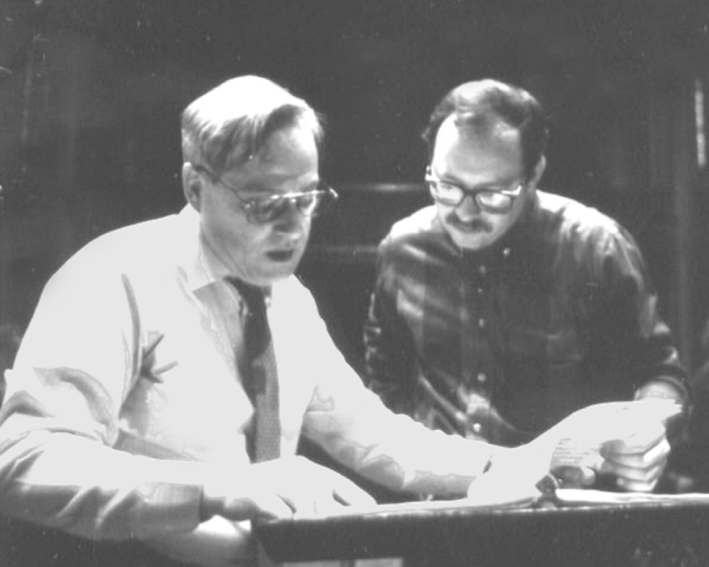 Dave Brubeck and Russell Gloyd. The Gates of Justice recording session, Goucher College. Baltimore, Maryland.