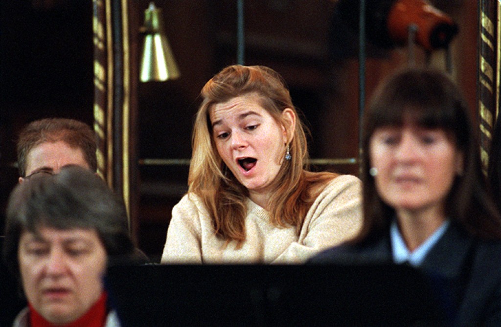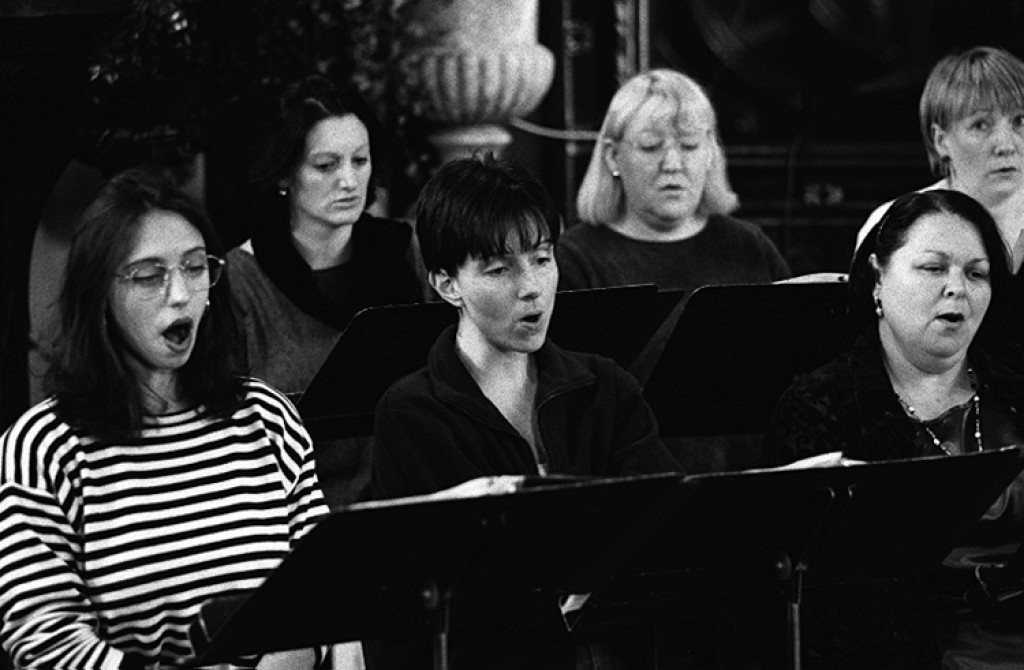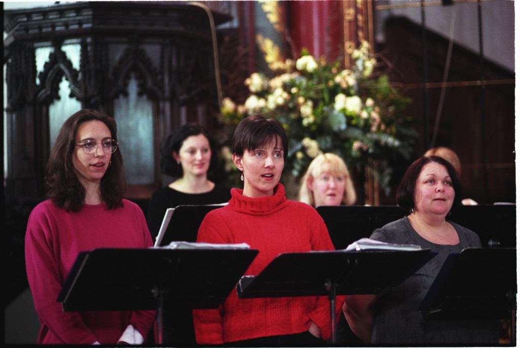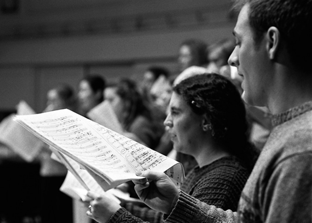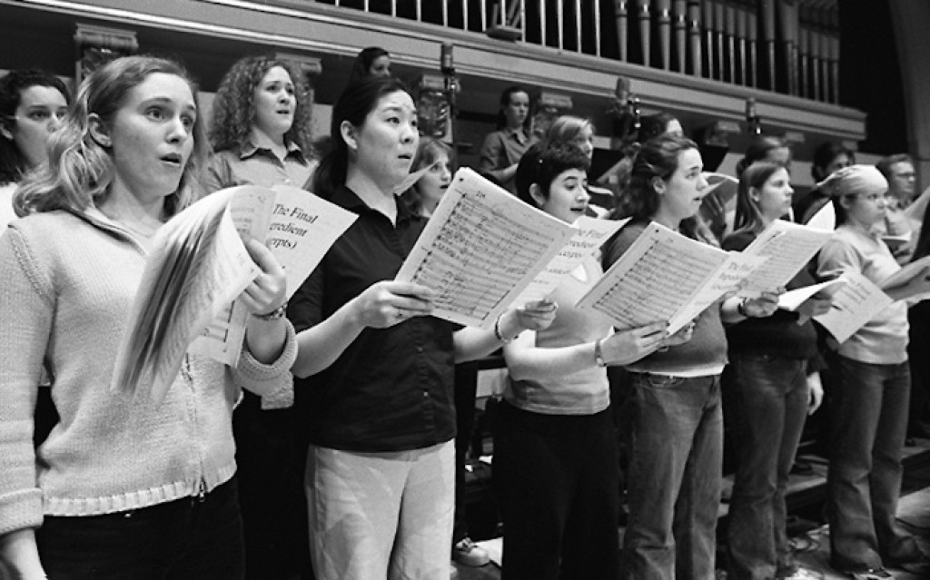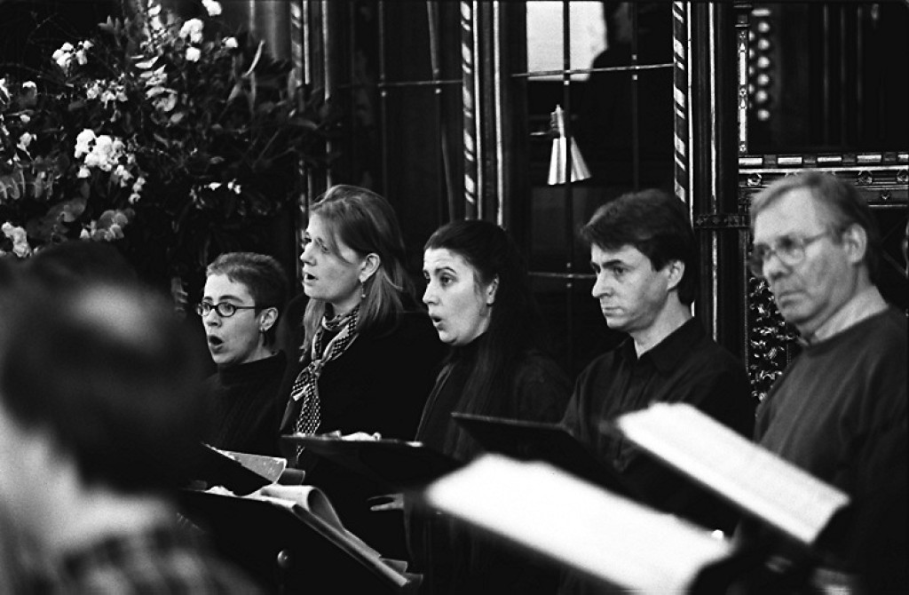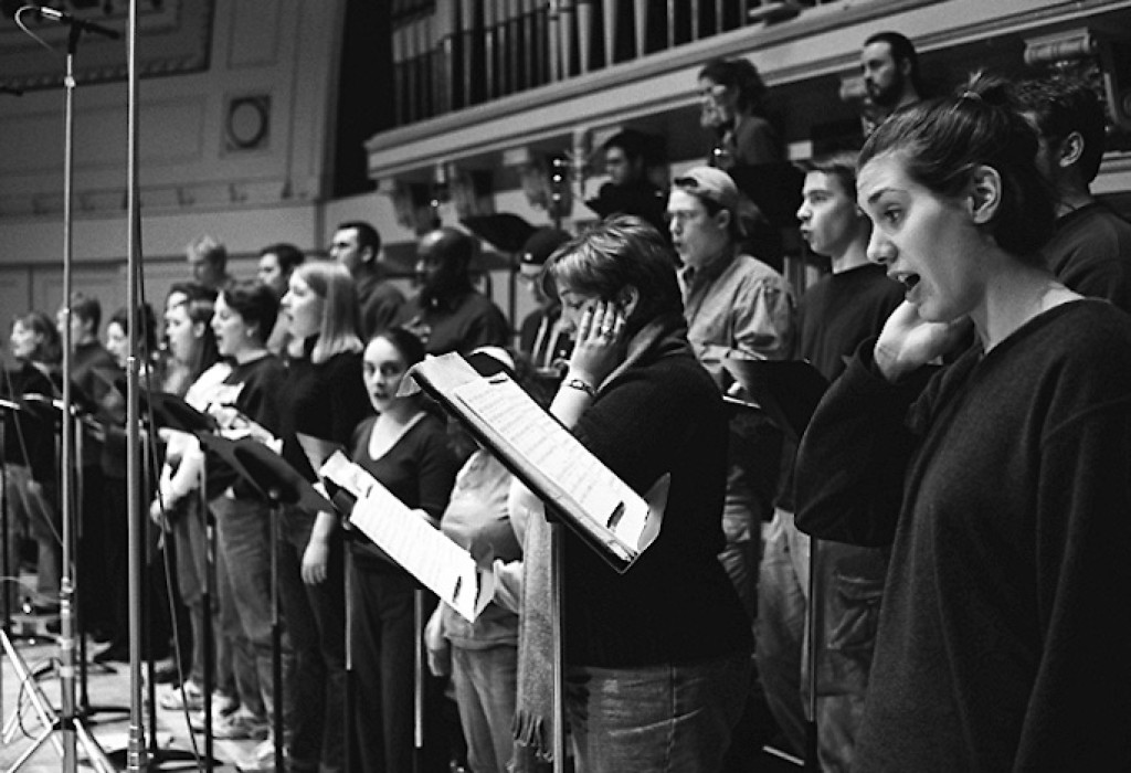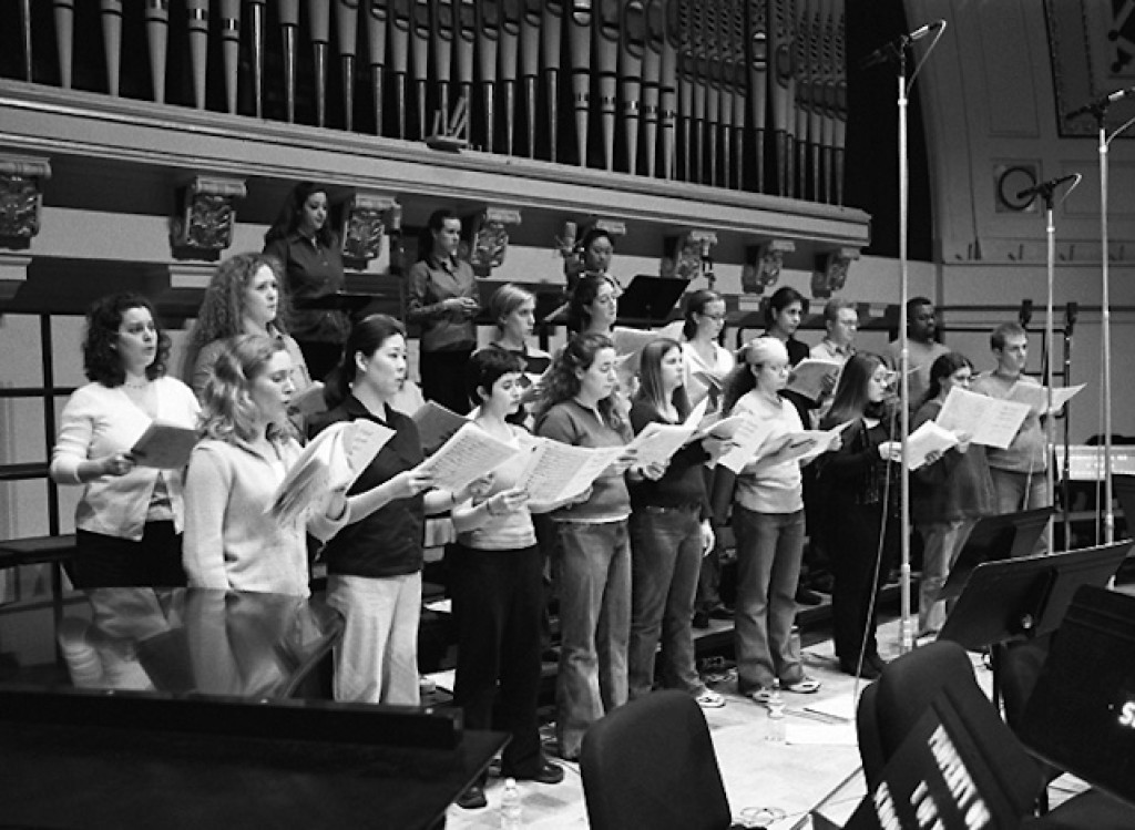 Members of the Baltimore Choral Arts Society. The Gates of Justice recording session, Goucher College. Baltimore, Maryland.