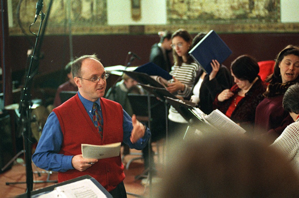 Milken Archive artistic director Neil Levin and members of the Vienna Boys Choir. Israel Suite recording session. Vienna, Austria. May 2000.