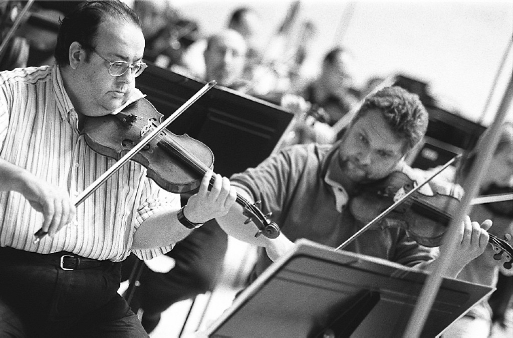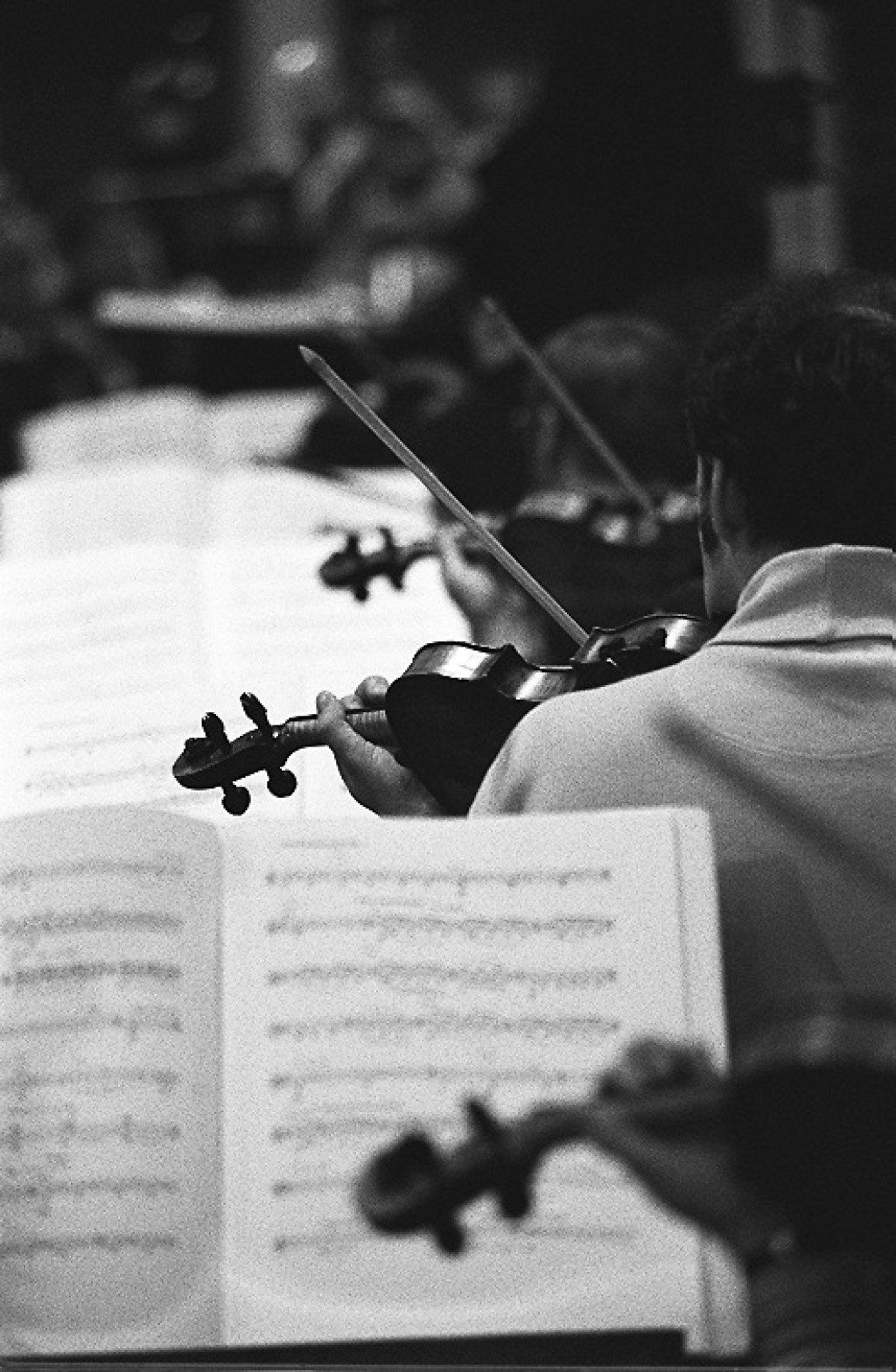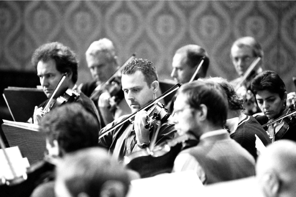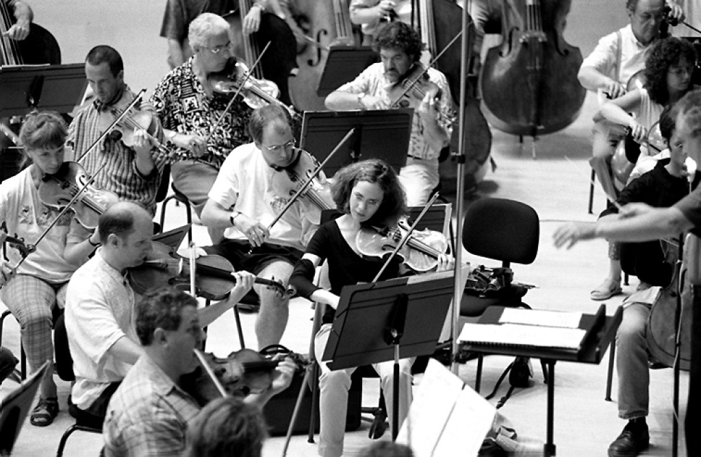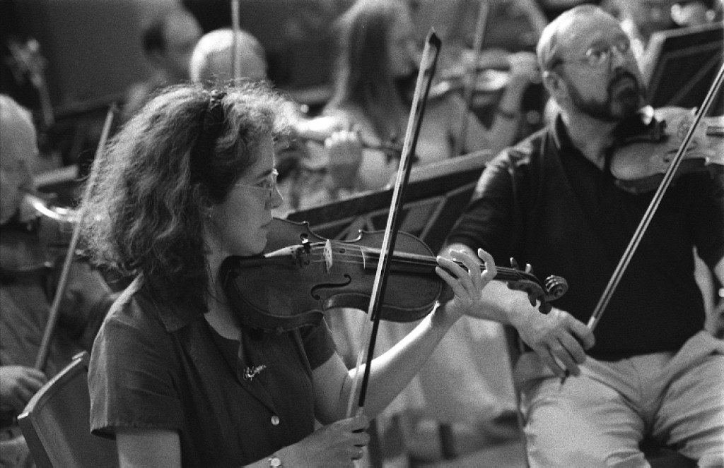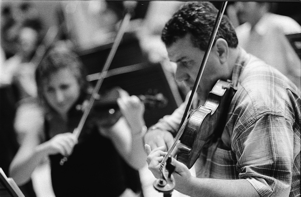Members of the Rundfunk-Sinfonieorchester. Avodat Shabbat recording session, Jesus-Christus-Kirche. Berlin, Germany.