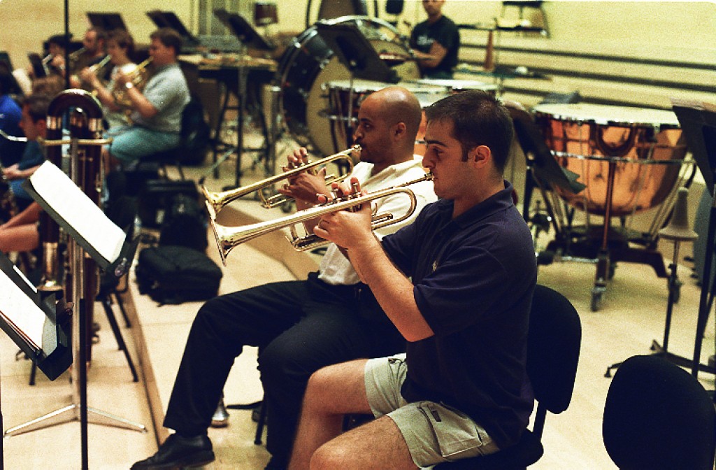 Gerard Schwarz and Alberto Mizrahi. Klezmer Rondos recording session, Benaroya Hall. Seattle, Washington.