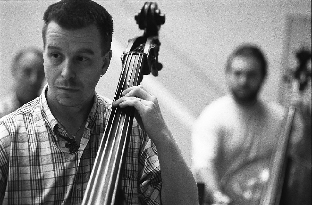 Michael Moore. The Gates of Justice recording session, Goucher College. Baltimore, Maryland. Moore is the bassist of the Dave Brubeck Trio.