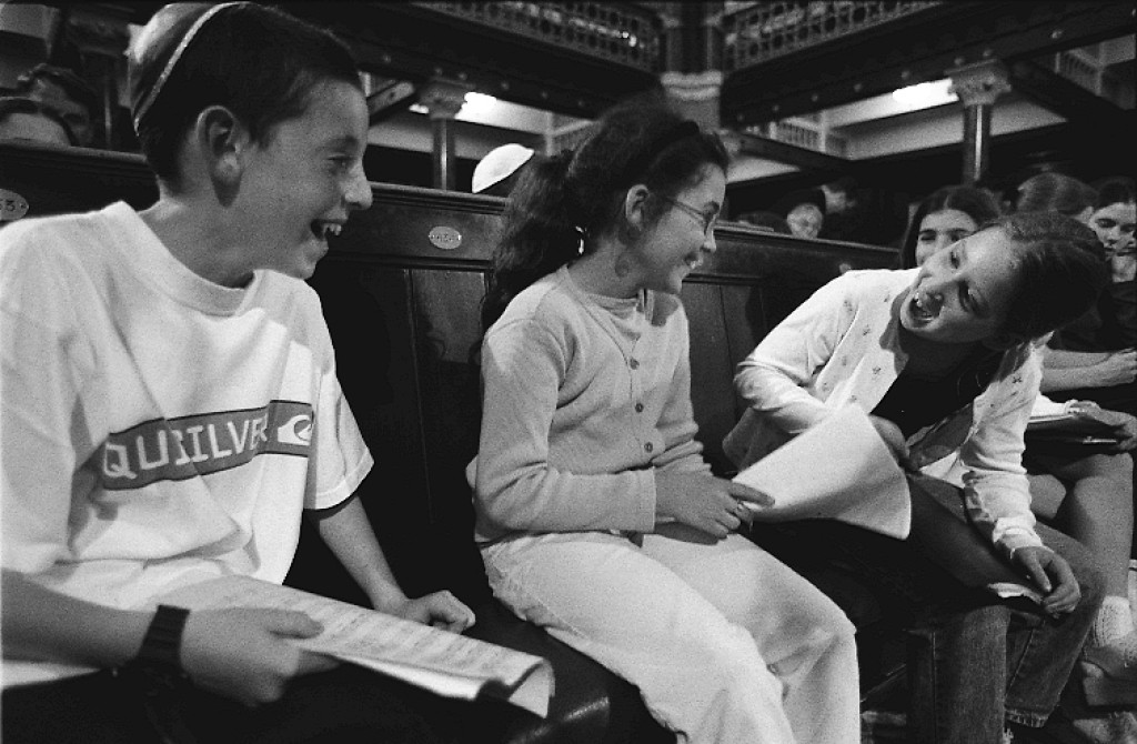 Cantor Benzion Miller with young choristers. Milken Archive recording session, New West End Synagogue. London, England.