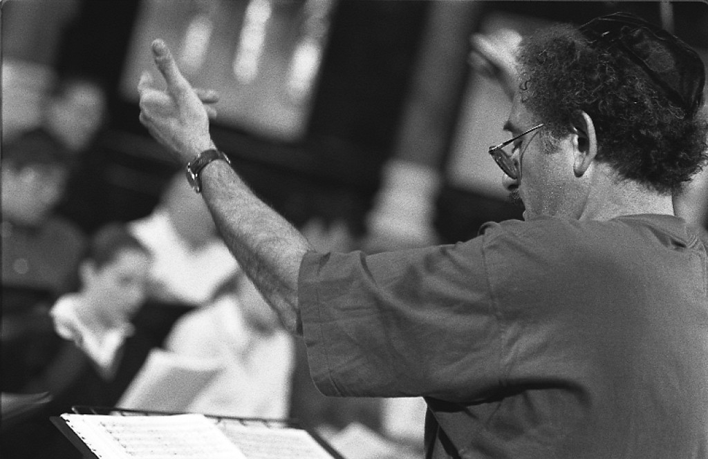 Gerard Schwarz conducts the Rundfunk-Sinfornieorchester Berlin. Avodat Shabbat recording session, Jesus-Christus-Kirche. Berlin, Germany.