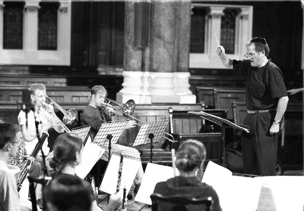 Gerard Schwarz. Milken Archive recording session, Jesus-Christus-Kirche. Berlin, Germany. Recorded pieces include Jacob Weinberg's Canzonetta and The Maypole, and Abraham Ellstein's Hassidic Dance.