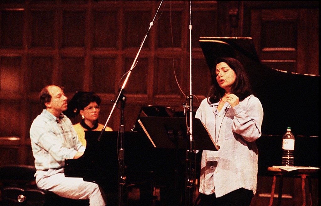 Angelina Réaux and Barry Snyder. Recording art songs by Leonard Bernstein. University of Rochester, New York. May 1993.
