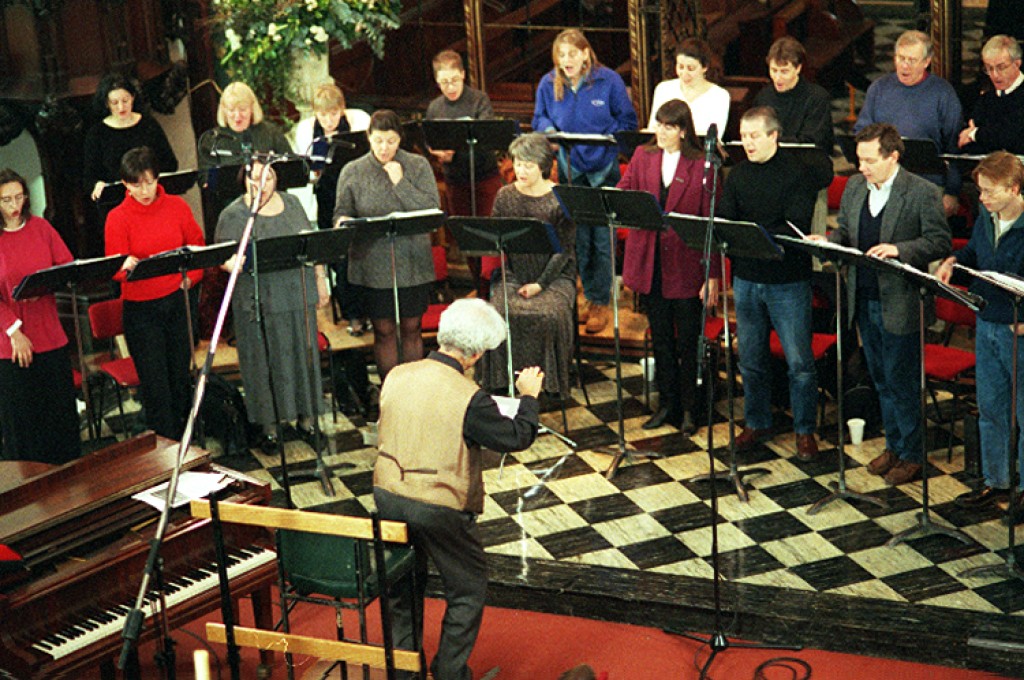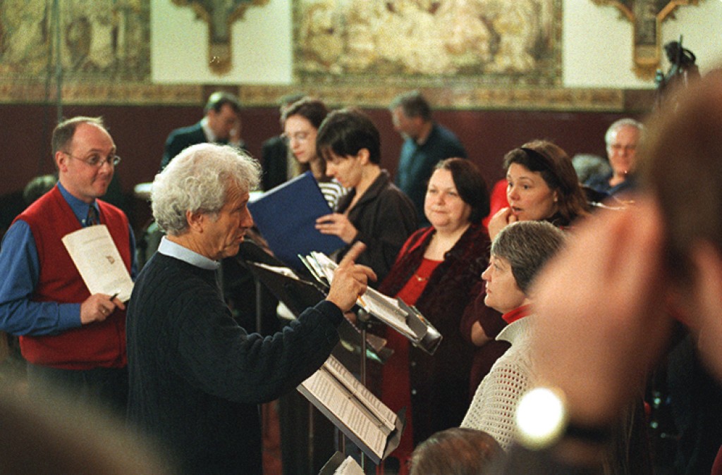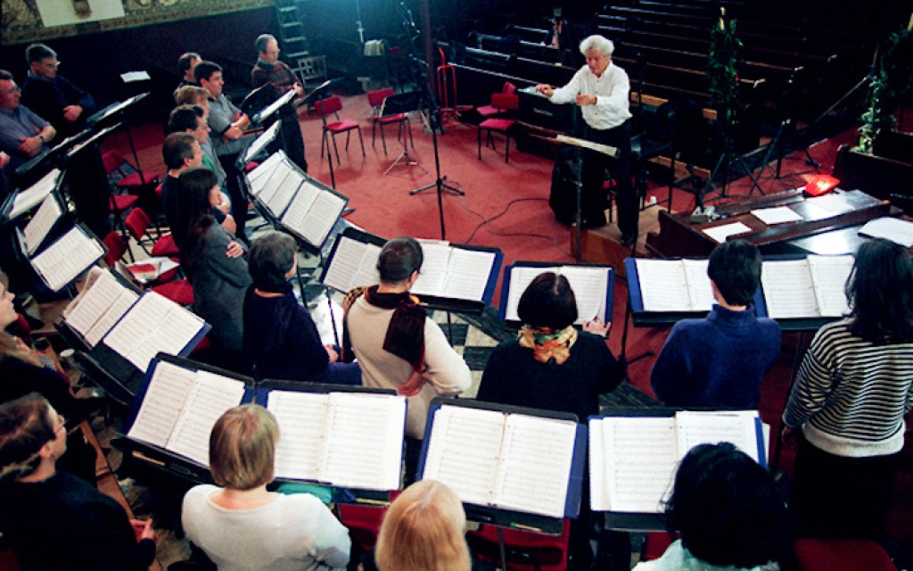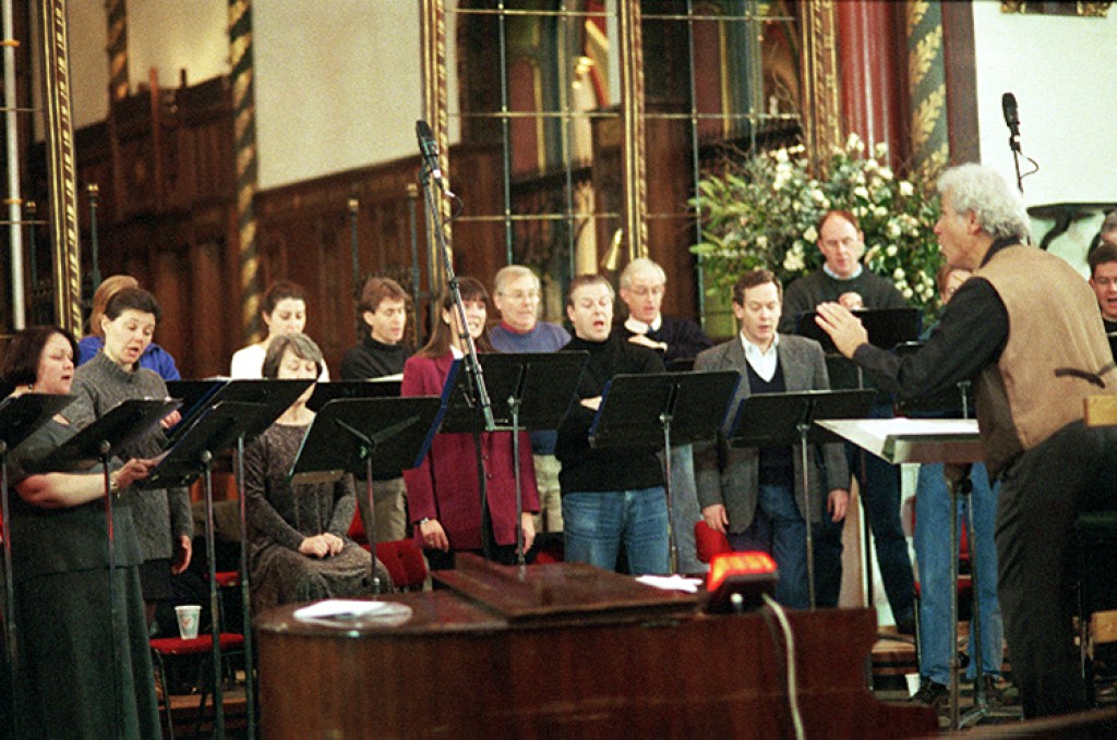 Avner Itai and the BBC Singers. Milken Archive recording session, St. Paul's Church, Knightsbridge. London, England.