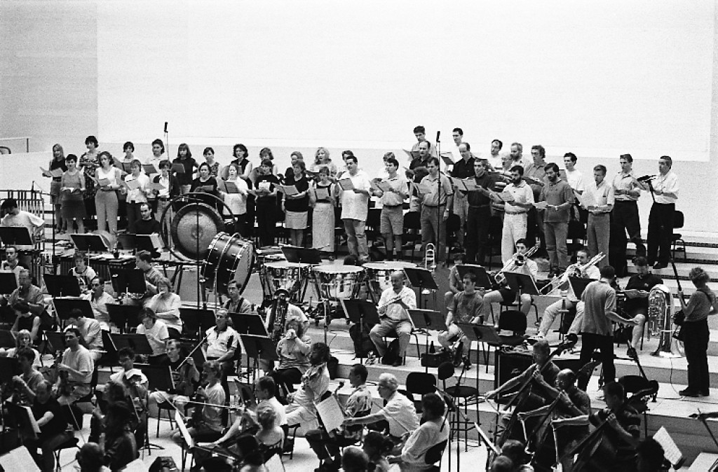 Members of Coral Cármina and the Barcelona Symphony-National Orchestra of Catalonia. The Vision of Ariel recording session, Centre Cultural de Sant Cugat. Barcelona, Spain.