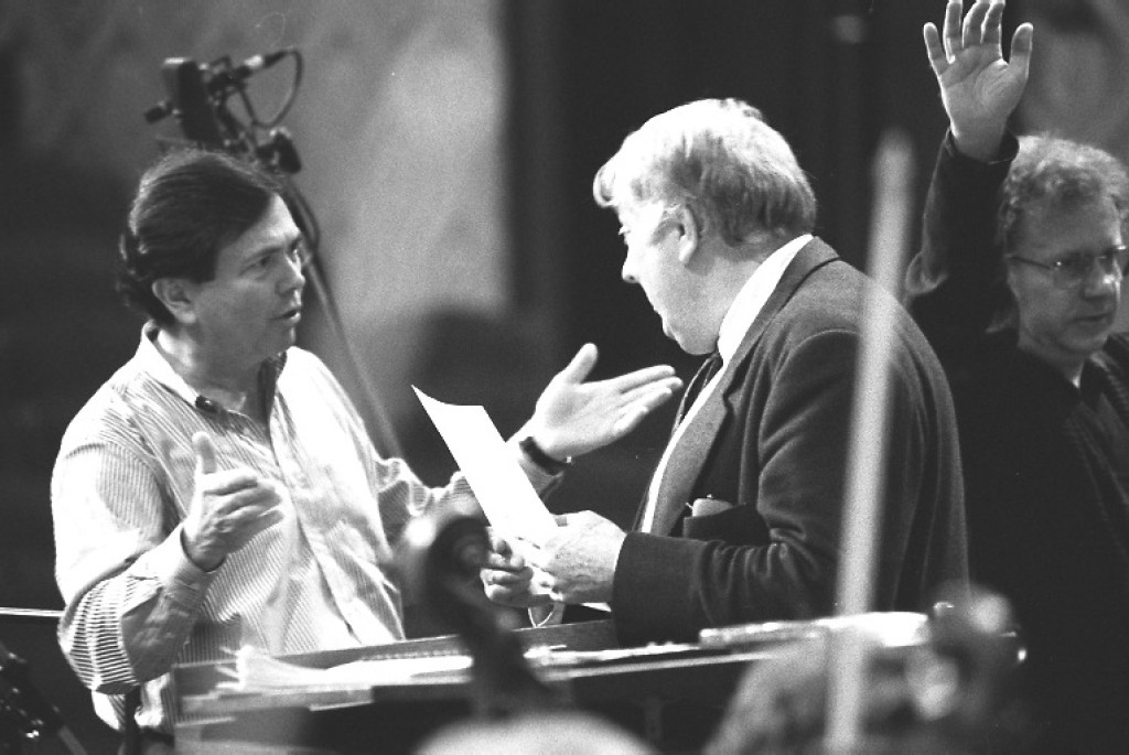 Gerard Schwarz, Carol Meyer, Elizabeth Shammash, Richard Clement, Ted Christopher, and Members of the Czech Philharmonic Orchestra. Milken Archive concert. Prague, Czech Republic.