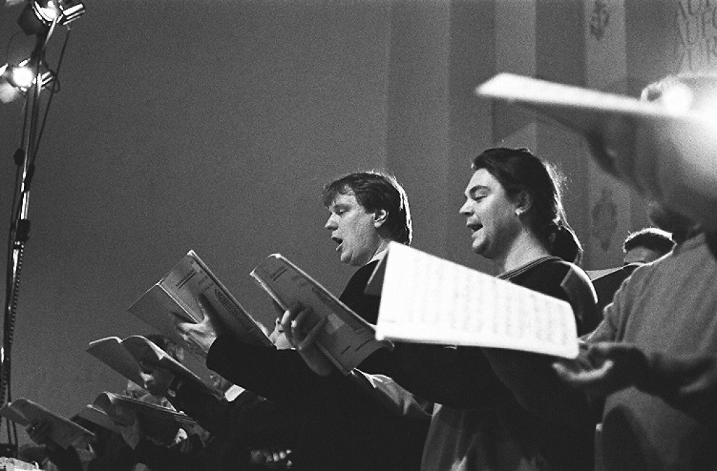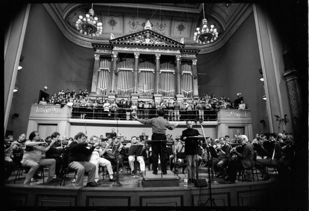 Gerard Schwarz, Robert Brubaker, the Ernst Senff Choir, and the Rundfunk-Sinfonieorchester Berlin. Avodat Shabbat recording session, Jesus-Christus-Kirche. Berlin, Germany.