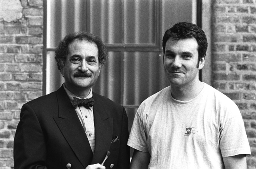 Neil Levin and conductor Nicholas Wilks. A Singing of Angels recording session, The Warehouse. London, England.