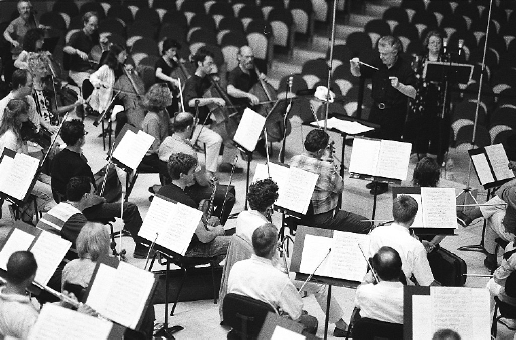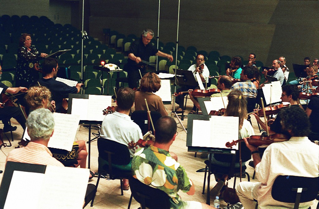 Jorge Mester, Phyllis Bryn-Julson, and members of the Barcelona Symphony. Milken Archive recording session. Barcelona, Spain.