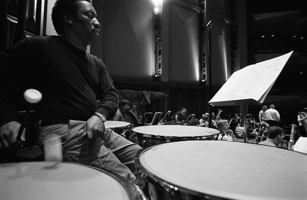Members of the Seattle Symphony orchestra. The Heavenly Feast recording session, Benaroya Hall. Seattle, Washington.